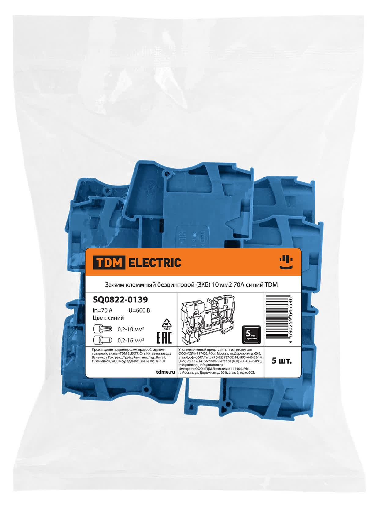 Зажим клеммный безвинтовой (ЗКБ) 10мм2 70А синий TDM SQ0822-0139 TDM