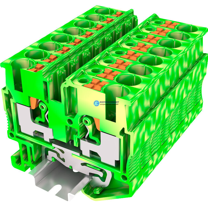 Клемма мини 1-1 проходная земля, Push-in, сечение 2,5 мм. кв., DIN 15, желто-зеленая, код TPM2.5-2-PE, производитель SUPU