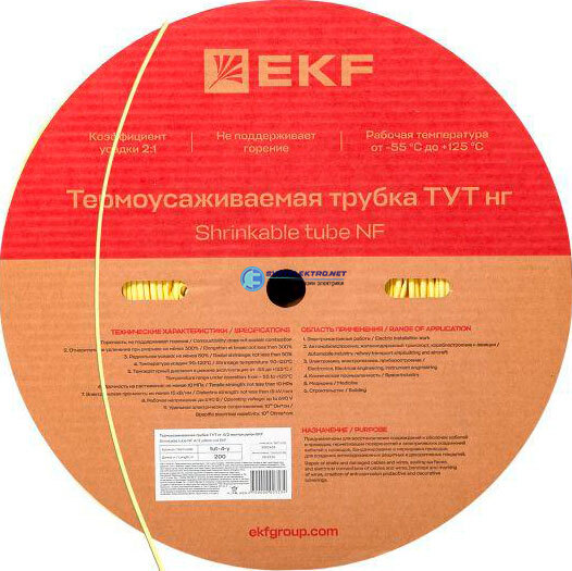 Трубка термоусаживаемая ТУТ нг 4/2 желтая рулон PROxima, код tut-4-y, производитель EKF