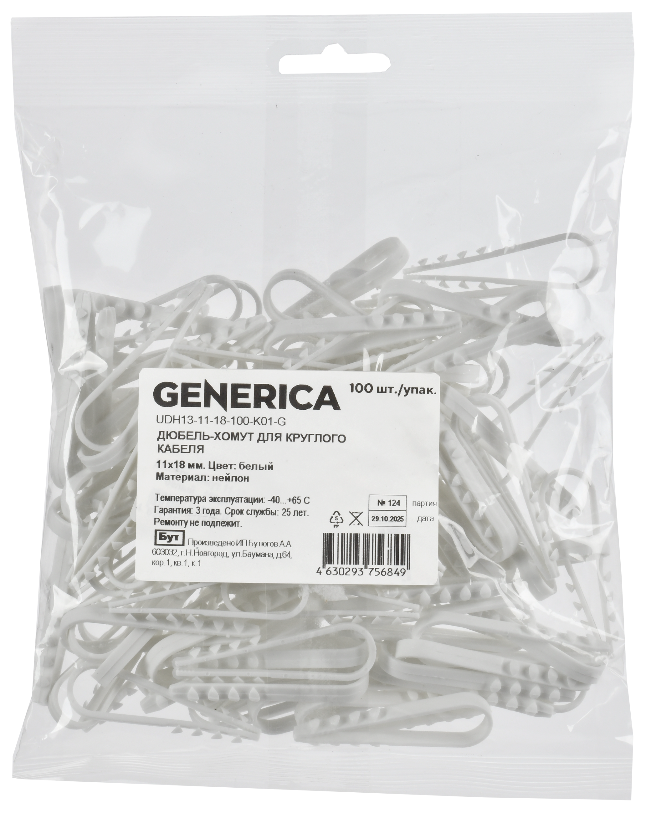 Дюбель-хомут 11х18мм для круглого кабеля нейлон белый (100шт/упак) UDH13-11-18-100-K01-G IEK