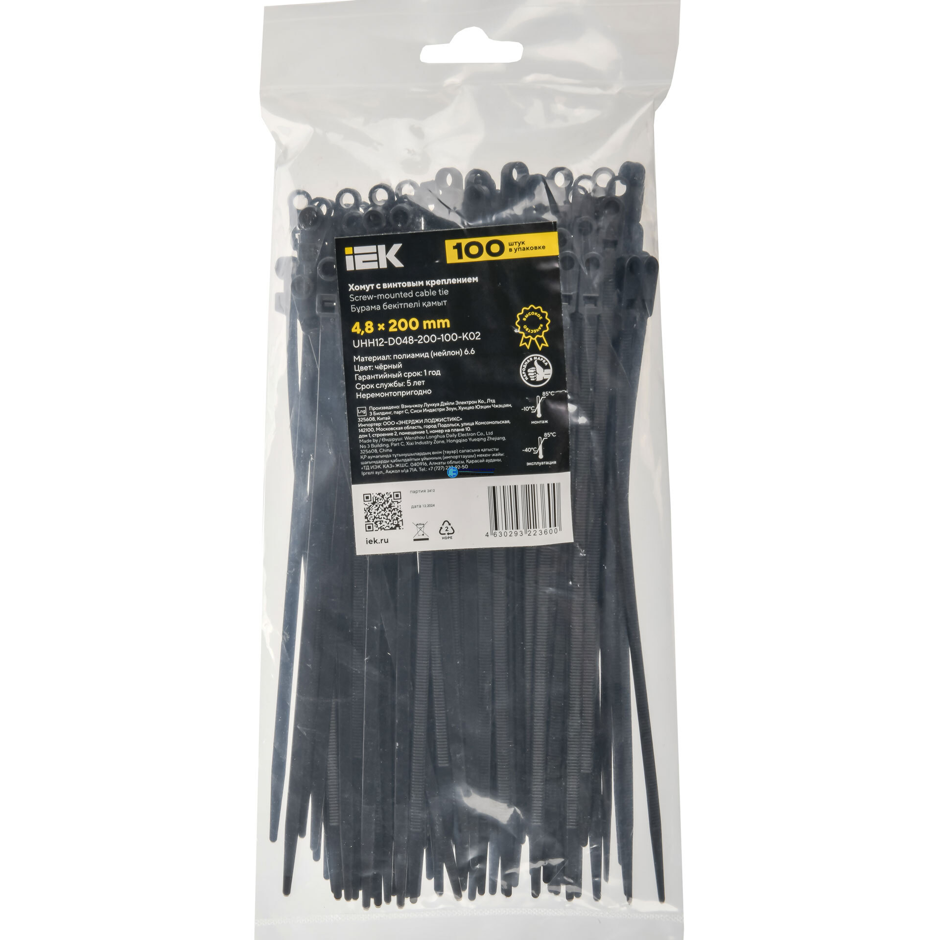 Хомут P6.6 с винтовым креплением черный 4.8х200мм 100шт/упак, код UHH12-D048-200-100-K02, производитель IEK