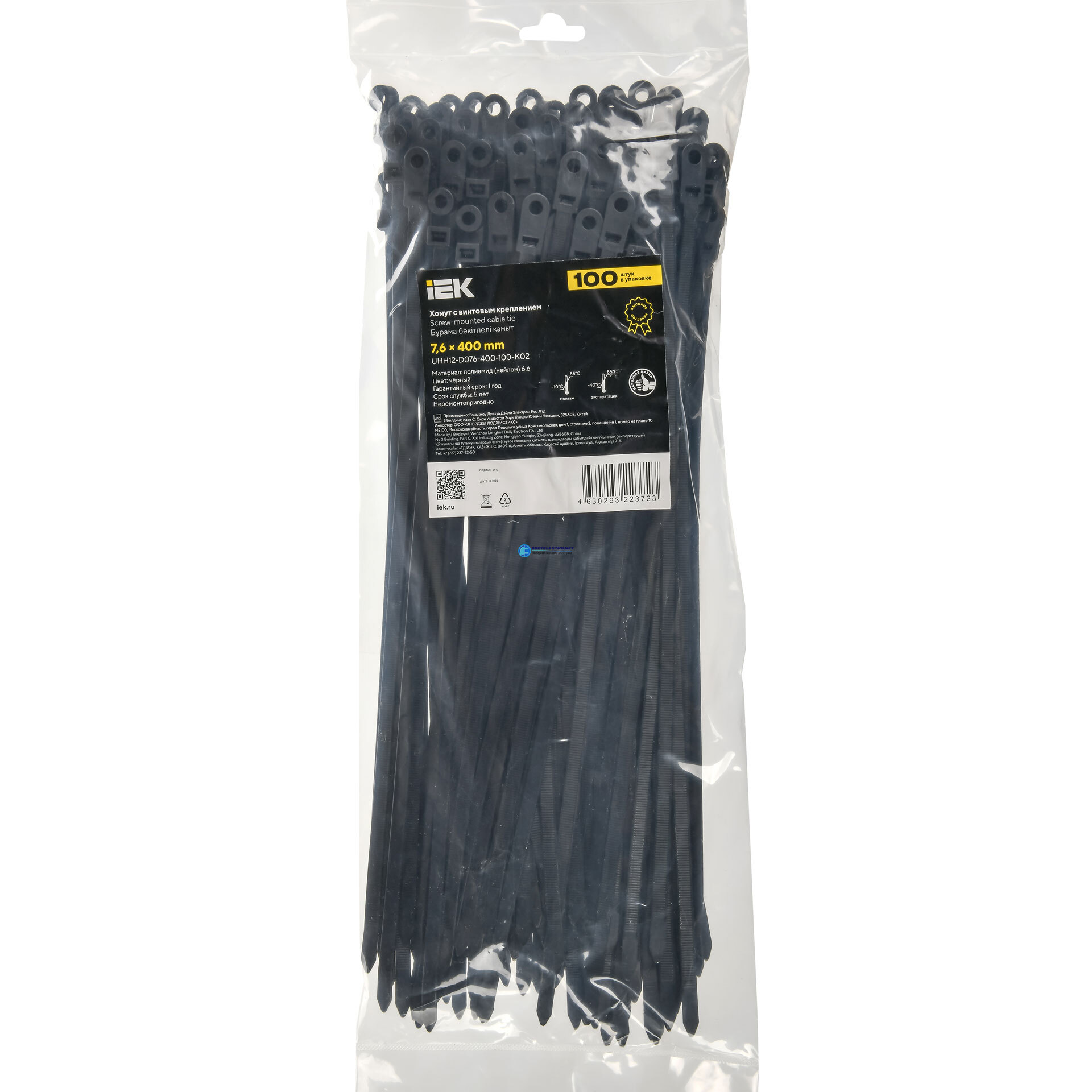 Хомут P6.6 с винтовым креплением черный 7.6х400мм 100шт/упак, код UHH12-D076-400-100-K02, производитель IEK