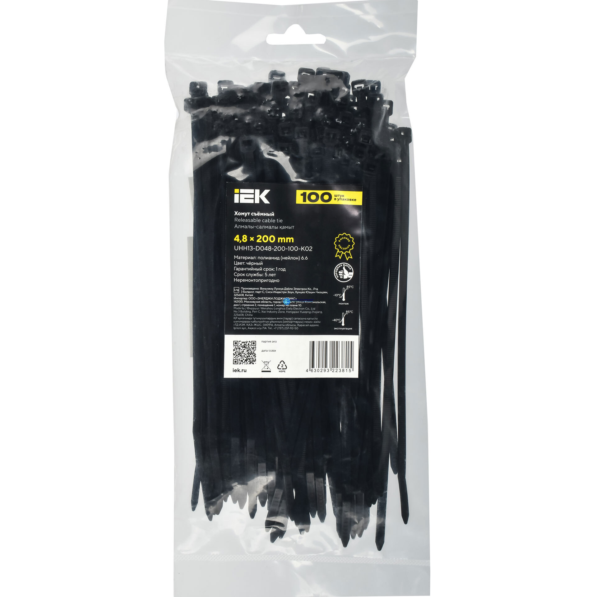 Хомут P6.6 съемный черный 4.8х200мм 100шт/упак, код UHH13-D048-200-100-K02, производитель IEK