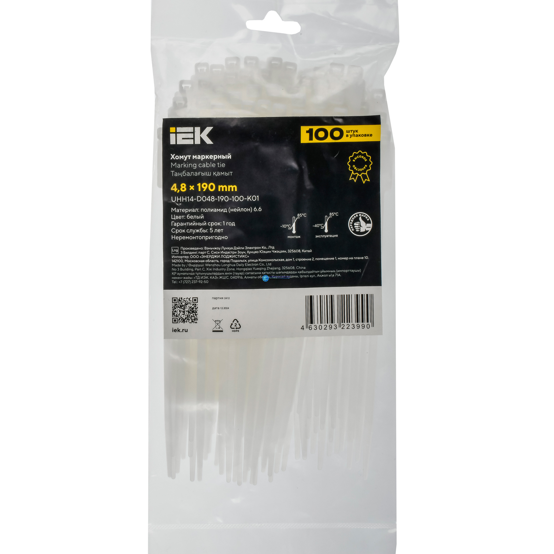 Хомут P6.6 маркерный белый 4.8х190мм 100шт/упак, код UHH14-D048-190-100-K01, производитель IEK