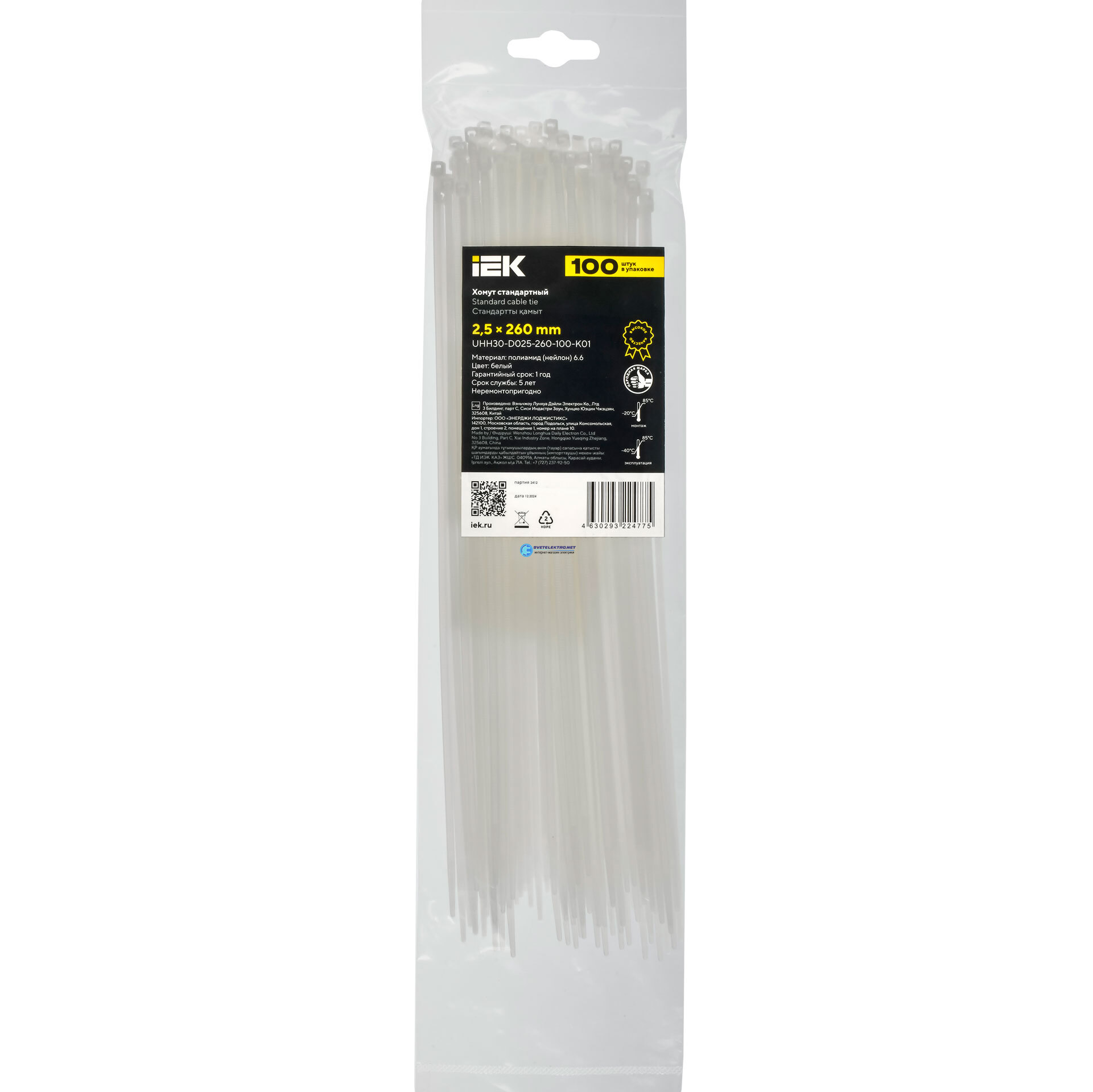 Хомут P6.6 стандартный белый 2.5х260мм 100шт/упак, код UHH30-D025-260-100-K01, производитель IEK