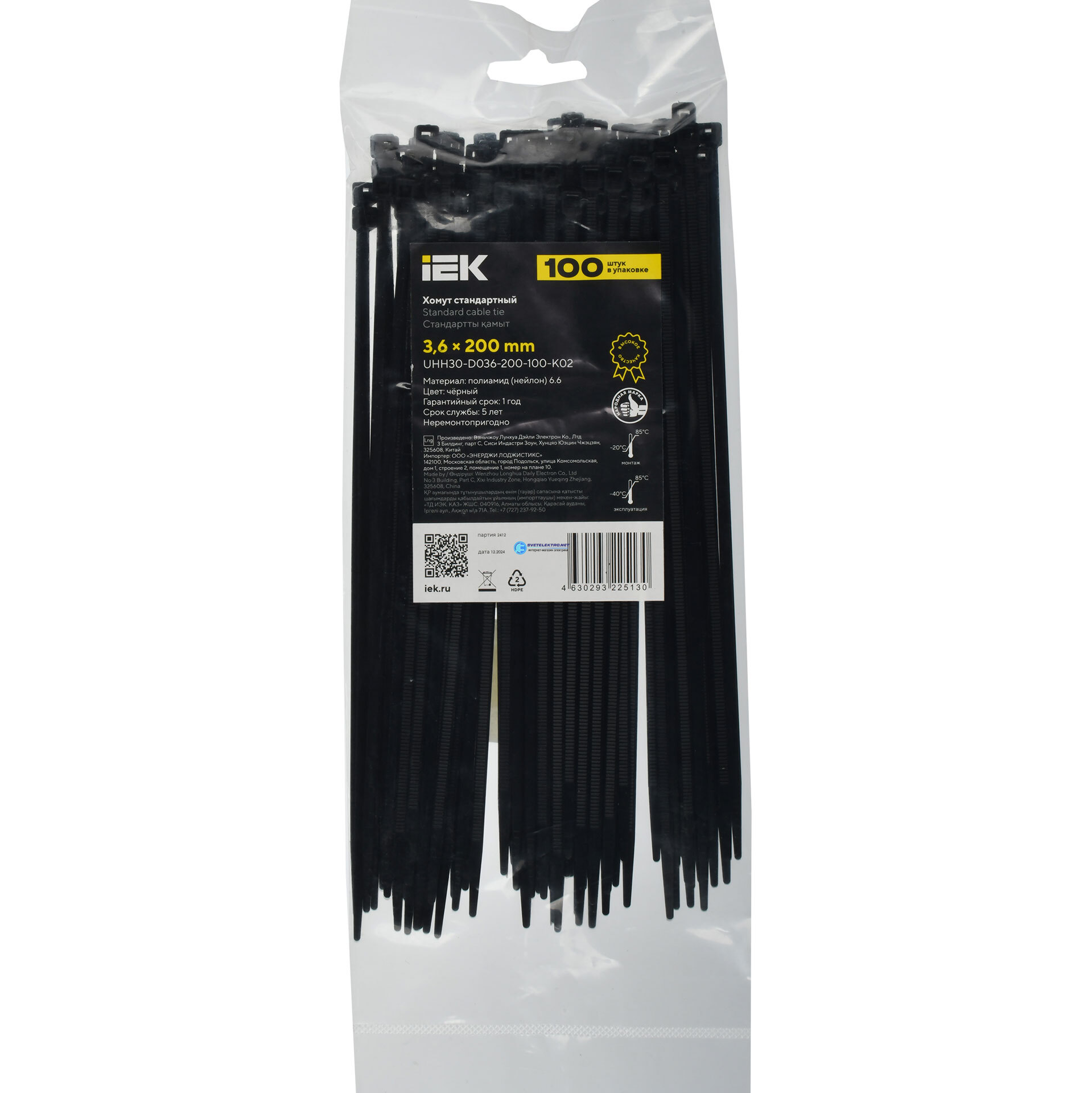 Хомут P6.6 стандартный черный 3.6х200мм 100шт/упак, код UHH30-D036-200-100-K02, производитель IEK