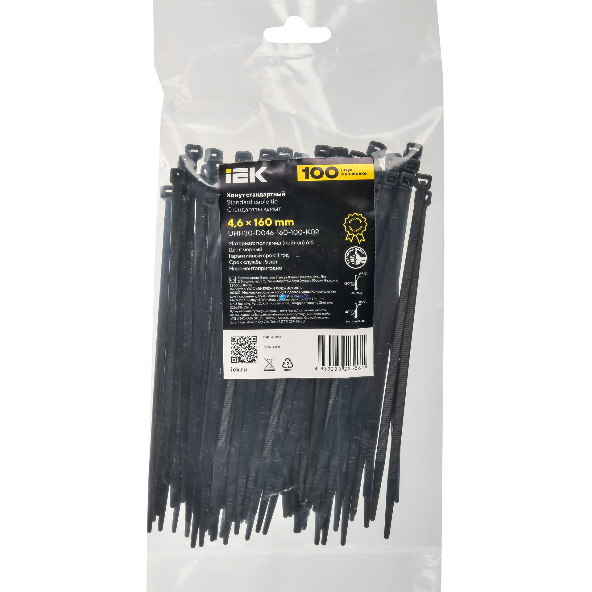 Хомут P6.6 стандартный черный 4.6х160мм 100шт/упак, код UHH30-D046-160-100-K02, производитель IEK