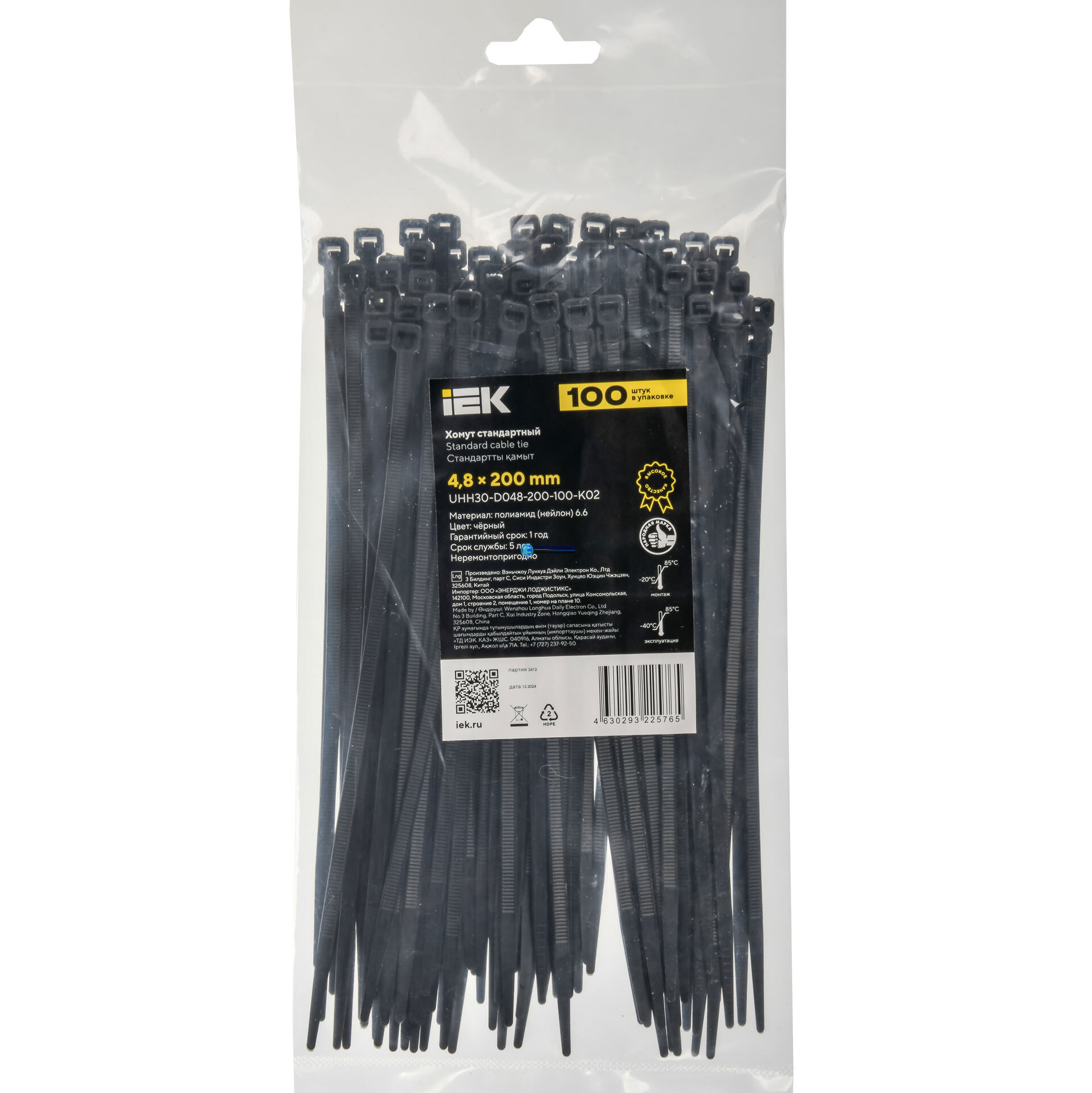 Хомут P6.6 стандартный черный 4.8х200мм 100шт/упак, код UHH30-D048-200-100-K02, производитель IEK