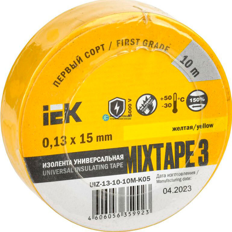 Изолента ПВХ желтая 15мм 10м, код UIZ-13-10-10M-K05, производитель IEK