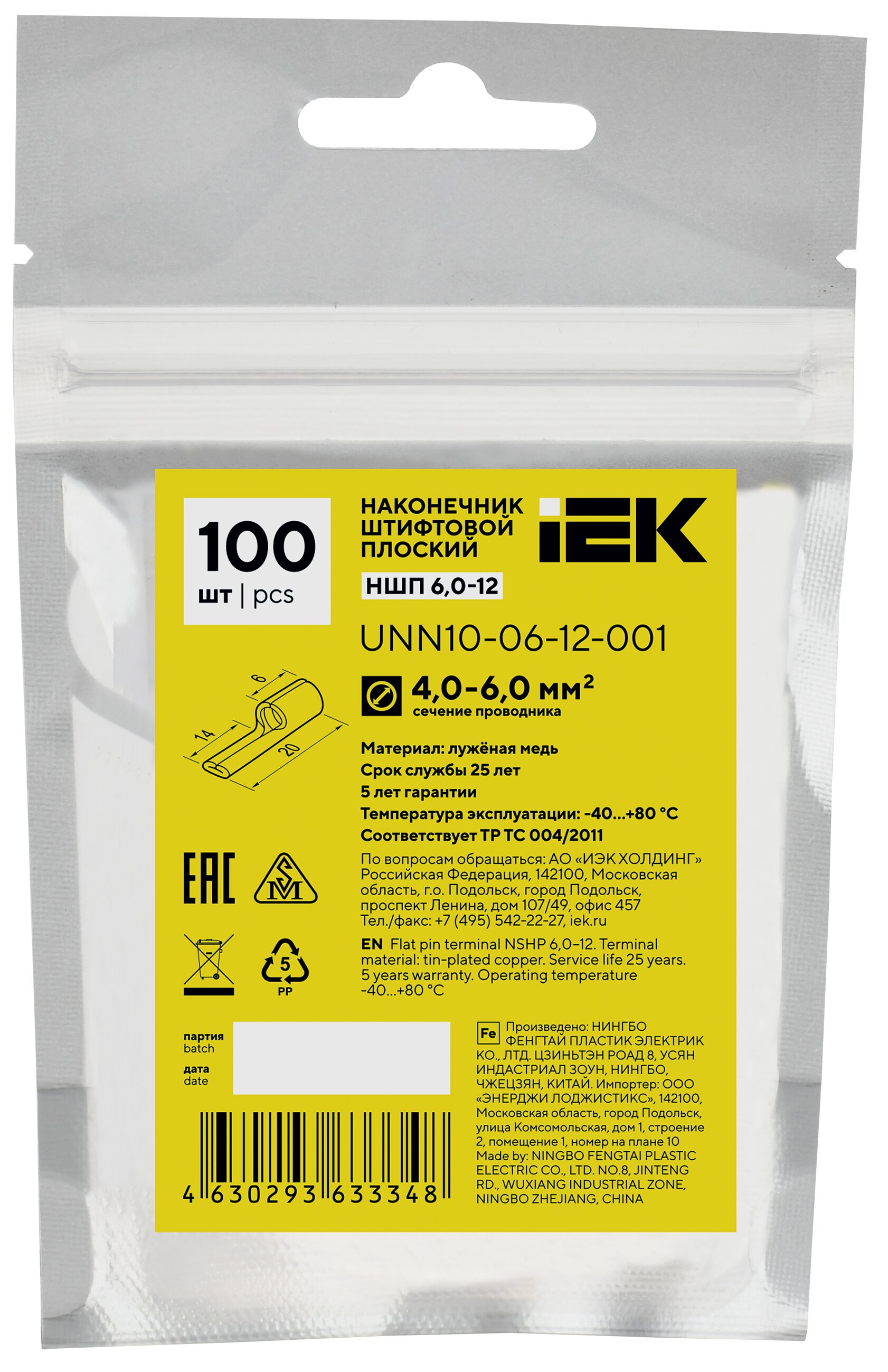 Наконечник НШП 6,0-12, код UNN10-06-12-001, производитель IEK