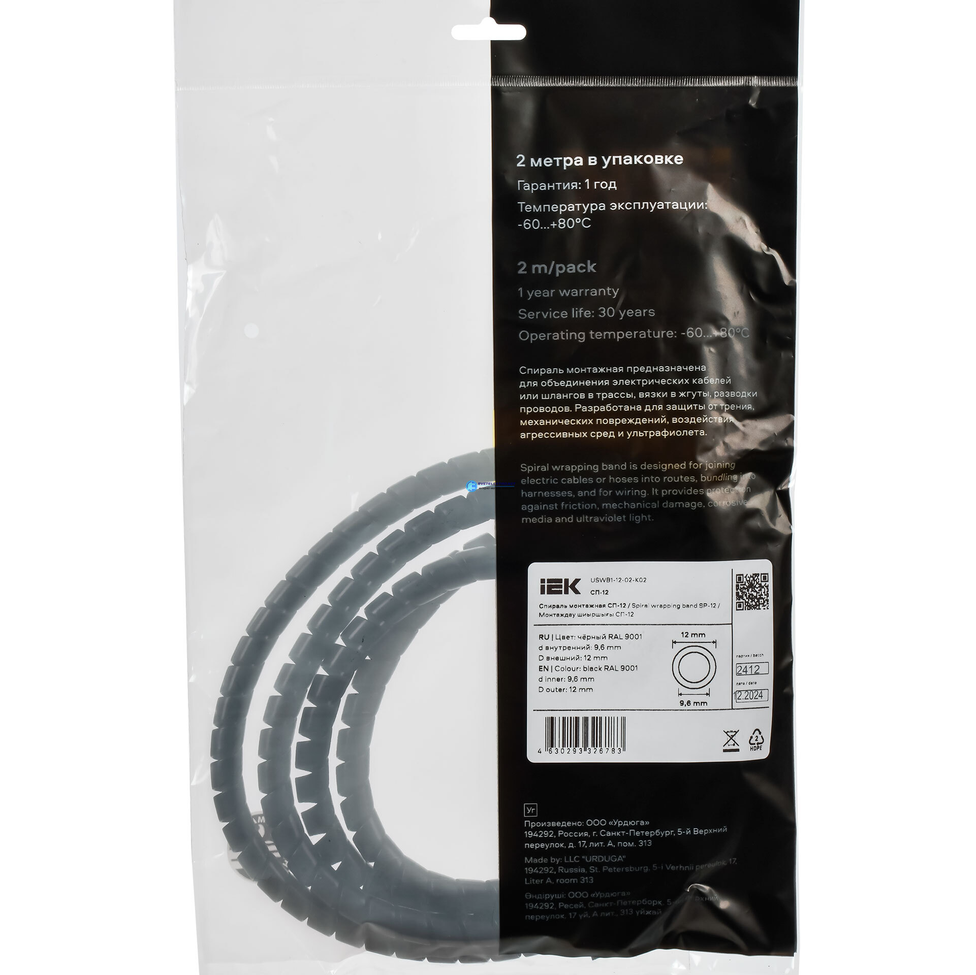 Спираль монтажная СП-12 черная (2м/упак) IEK USWB1-12-02-K02 IEK