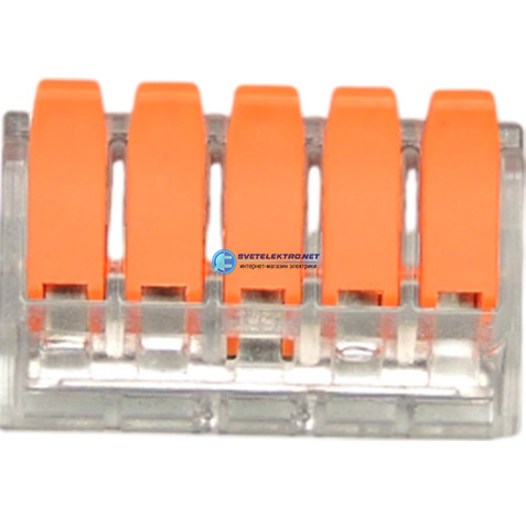 Строительно-монтажная клемма 5 контакта 0,5-6мм2 (упаковка 50 шт.) прозрачная с рычажным зажимом LT-615, код УТ-00027227, производитель Ютл