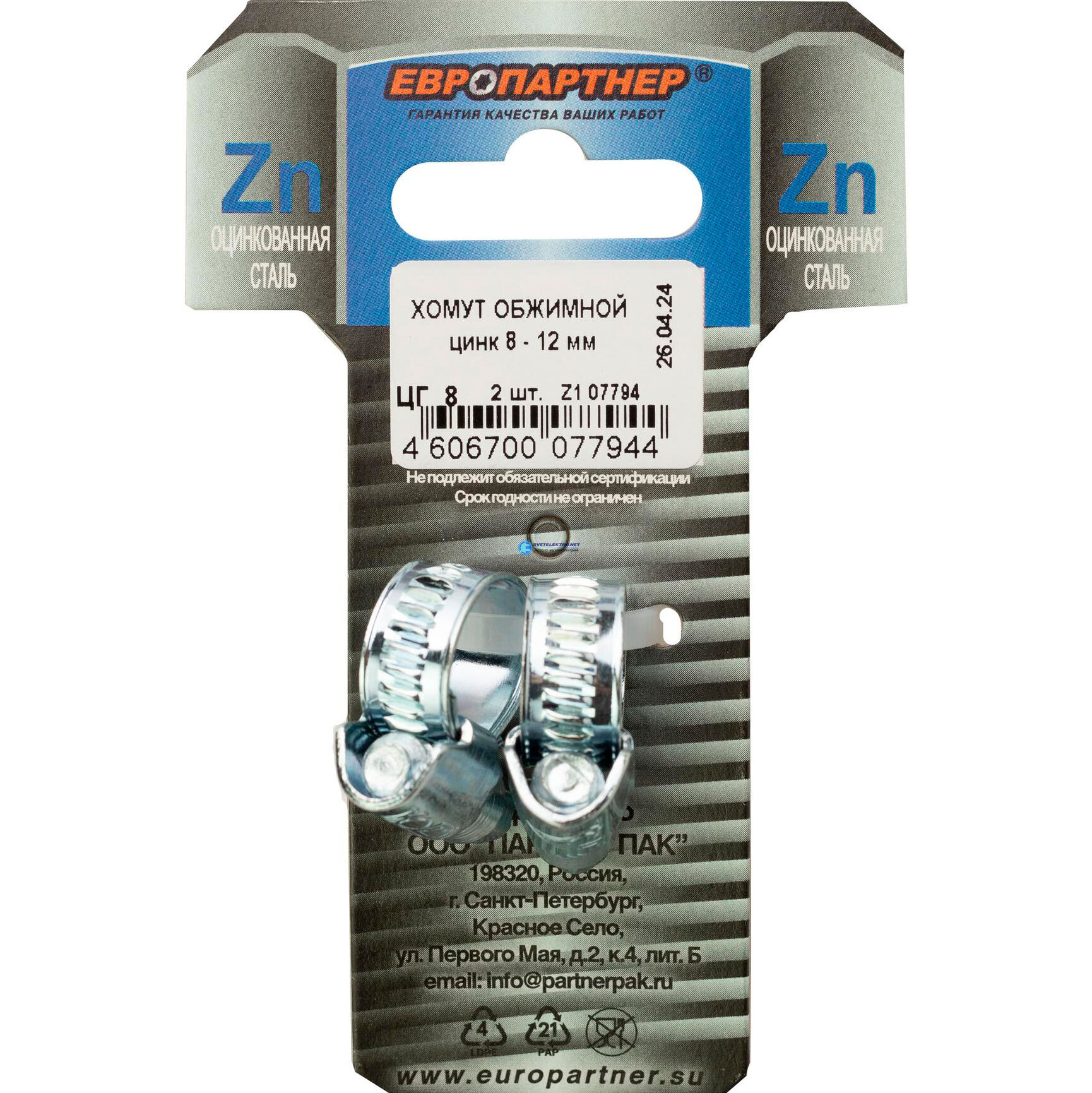 Хомут червячный обжимной оцинкованный 8-12 (2 шт.) Z1 07794 Европартнер