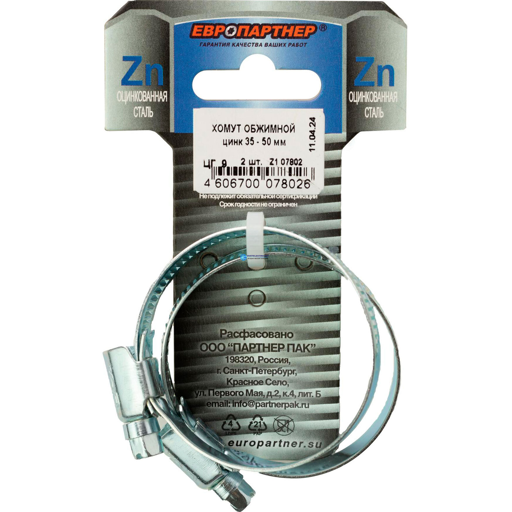 Хомут червячный обжимной оцинкованный 35-50 (2 шт.) Z1 07802 Европартнер