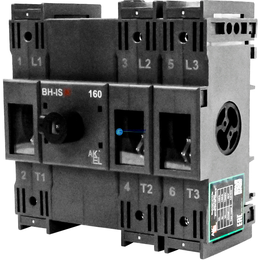 Выключатель нагрузки с видимым разрывом ВН-IS-DC-3P-160A-В, тип тока AC/DC, 3P/160A/750В/Без ручки управления и переходника, код 804023, производитель АКЭЛ