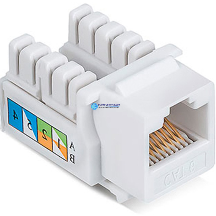 Модуль Keystone Jack RJ-45(8P8C) UTP неэкранированный CAT6 90град белый, код 02-0254, производитель REXANT