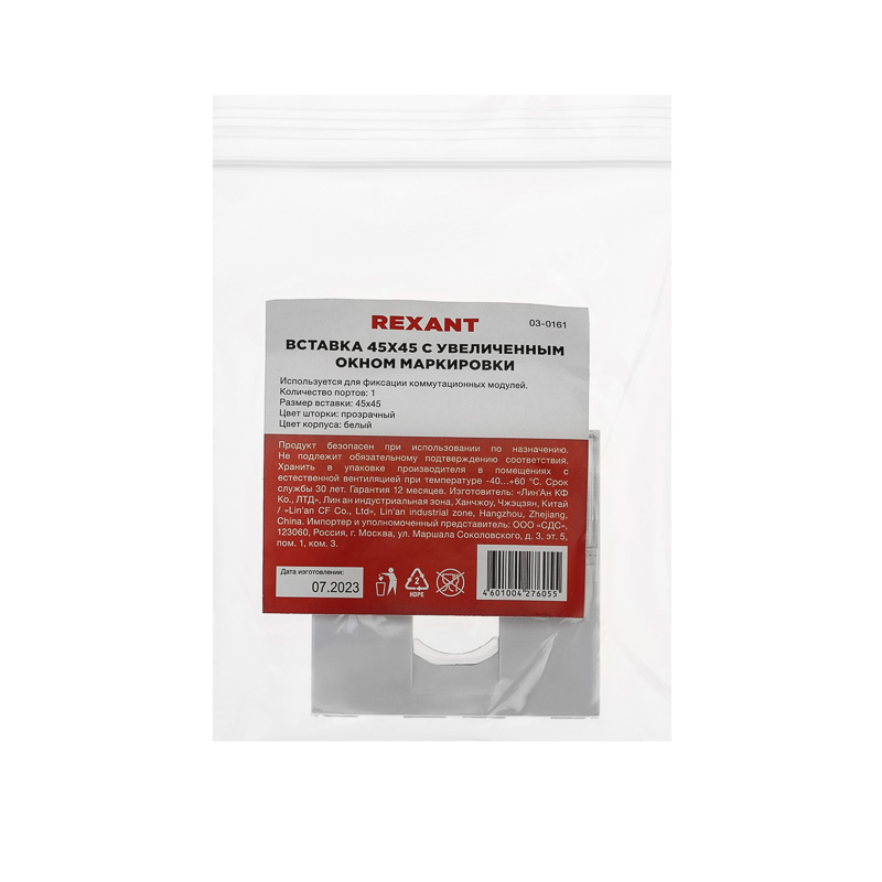 Вставка Mosaic 45x45, на порт с прозрачной шторкой и увеличенным окном маркировки, код 03-0161, производитель REXANT