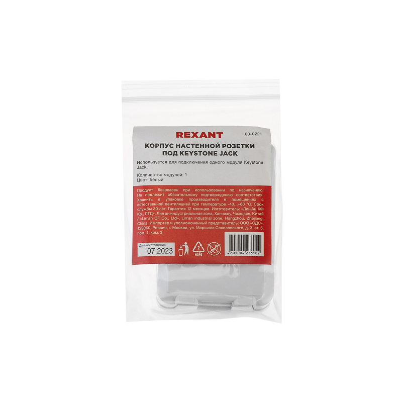 Корпус настенной розетки под модуль Keystone Jack белый, код 03-0221, производитель REXANT
