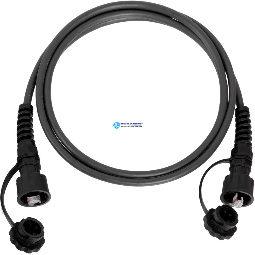 Патч-корд промышленный U/UTP 4 пары, Кат.6 2хRJ45/8P8C, T568B, 24AWG (7х0,195мм), IP67 с защитной крышкой, PUR, черный, 3м, код ЭКО62223, производитель NIKOMAX