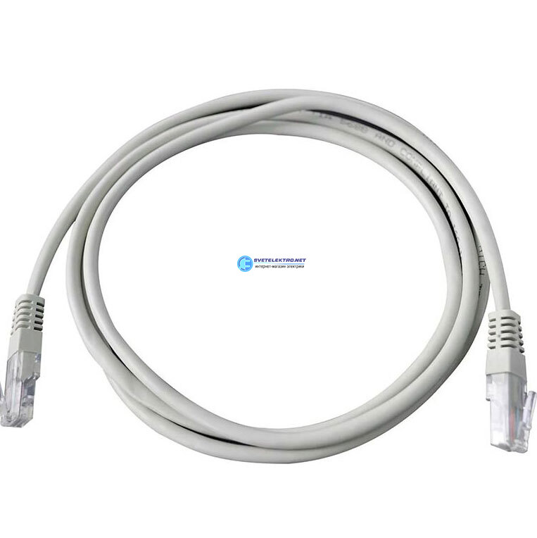 Патч-корд 2хRJ45/8P8C, T568B кат. литой CCA метра, PVC, серый, код КОС-LSM-PC-UTP-RJ45-5e-1.5-PVC-GY, производитель KOSCAB