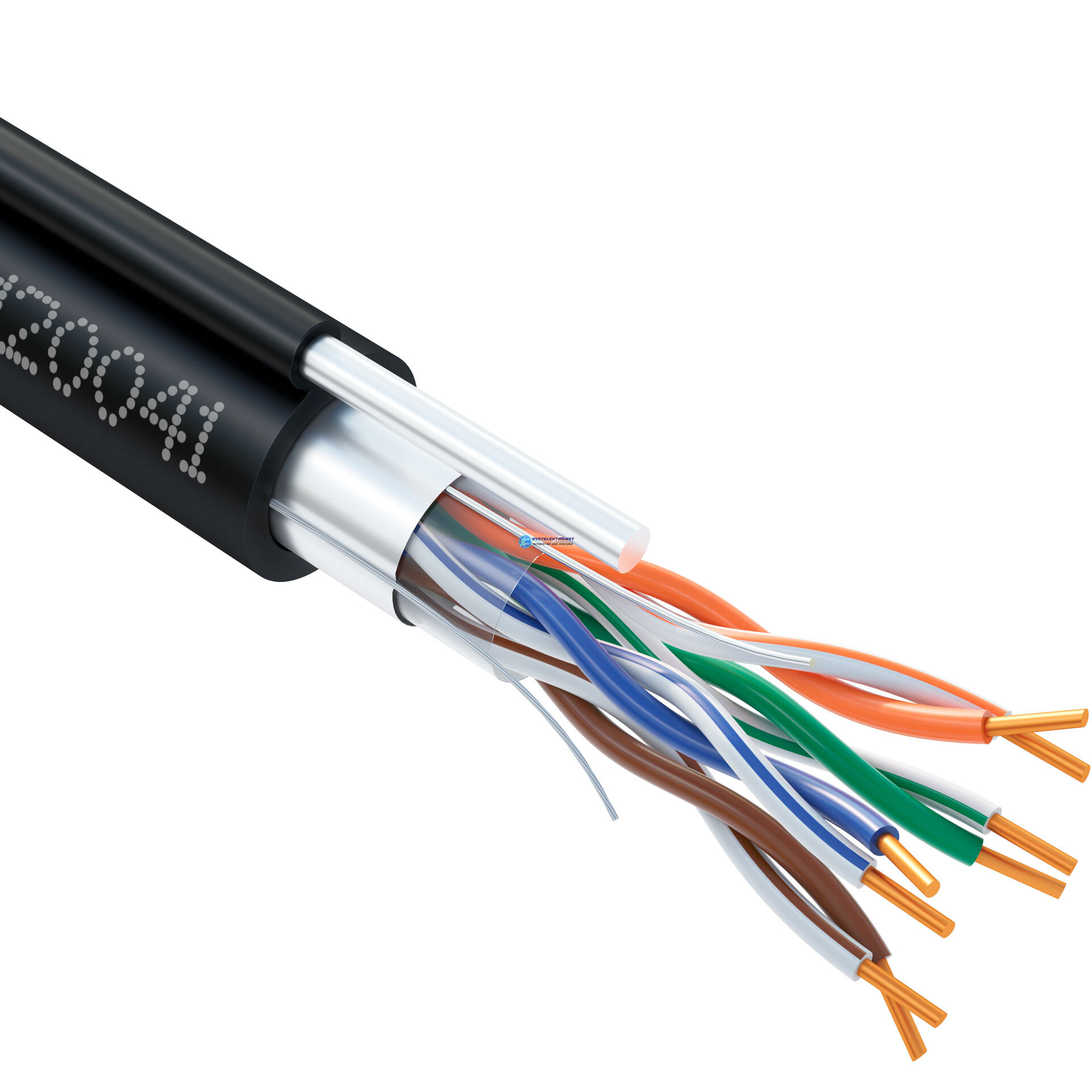Витая пара F/UTP CAT 5e 4x2x0.52 мм 24AWG Медь внешний стальной трос 2.0мм PE черный Fluke Tested 305м NM20041 NEOMAX