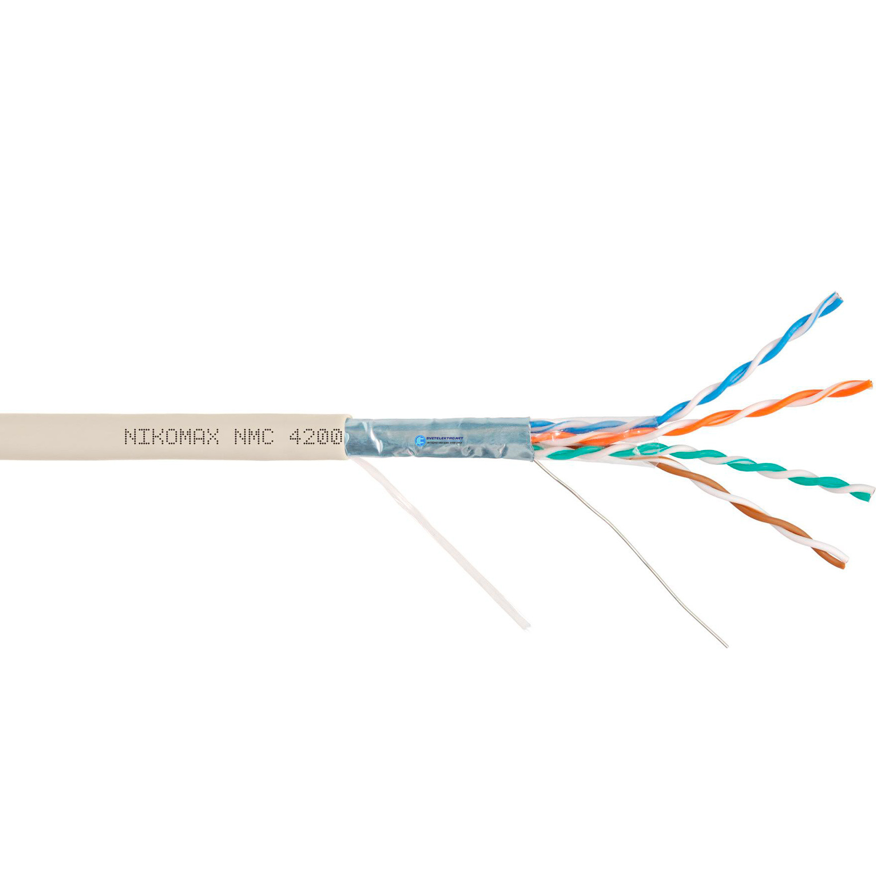 Кабель F/UTP 4 пары, Кат.5e (Класс D), тест по ISO/IEC, 100МГц, одножильный, BC (чистая медь), 24AWG (0,51мм), полимерный материал нг(А)-LSLTx, внутре NMC 4200L-IY NIKOMAX