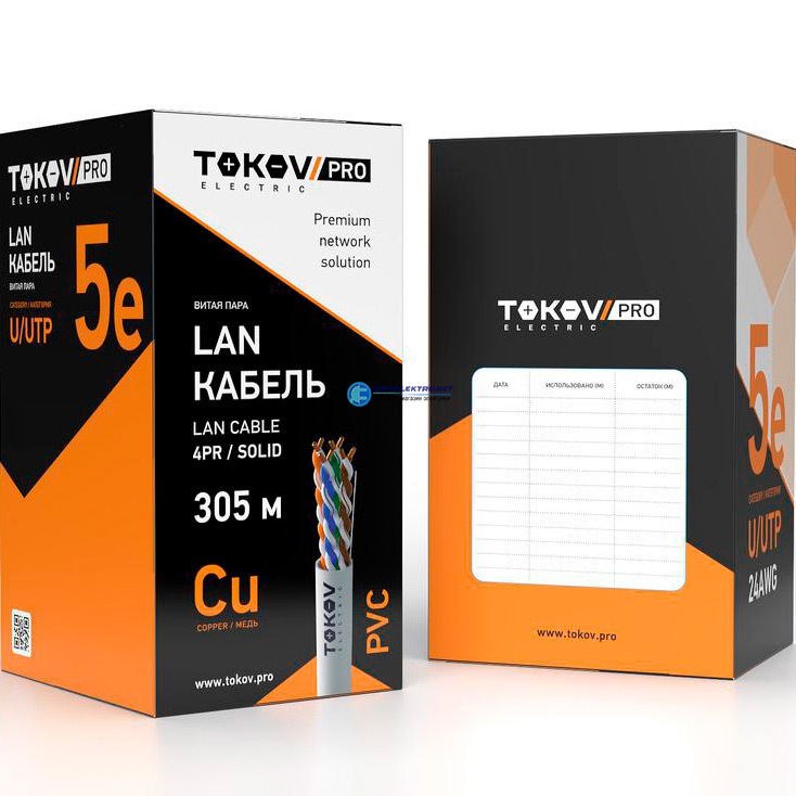 Кабель витая пара U/UTP 4х2х24AWG(0.51мм) кат.5E PVC TOKOV PRO Fluke tested (м) TKP-C06-U42-5E-305-PVC TOKOV ELECTRIC