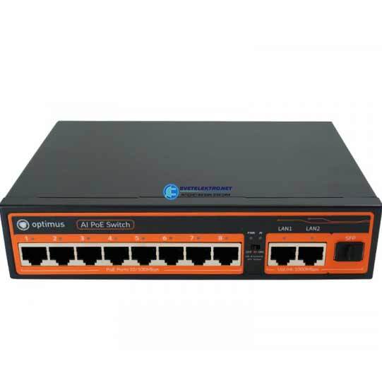 Комутатор неуправляемый PoE портов до 00 Мбит/с Uplink SFP до Мбит/с, код U1I-8F/2G/1S, производитель Optimus CCTV
