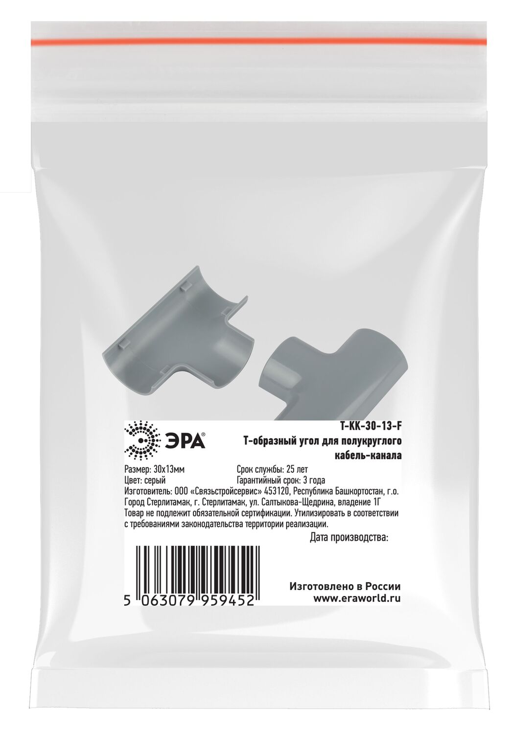 Угол т-образный T-KK-30-13-F для полукруглого кабель-канала серый 30х13мм 2шт/комплект, код Б0064914, производитель ЭРА
