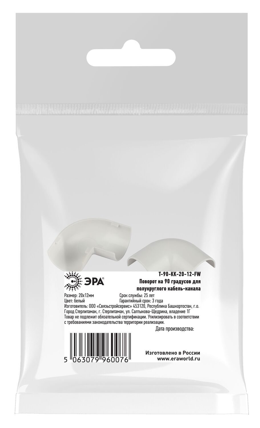 Поворот T-90-KK-20-12-FW на 90 градусов для полукруглого кабель-канала белый 20х12мм 2шт/комплект, код Б0064981, производитель ЭРА