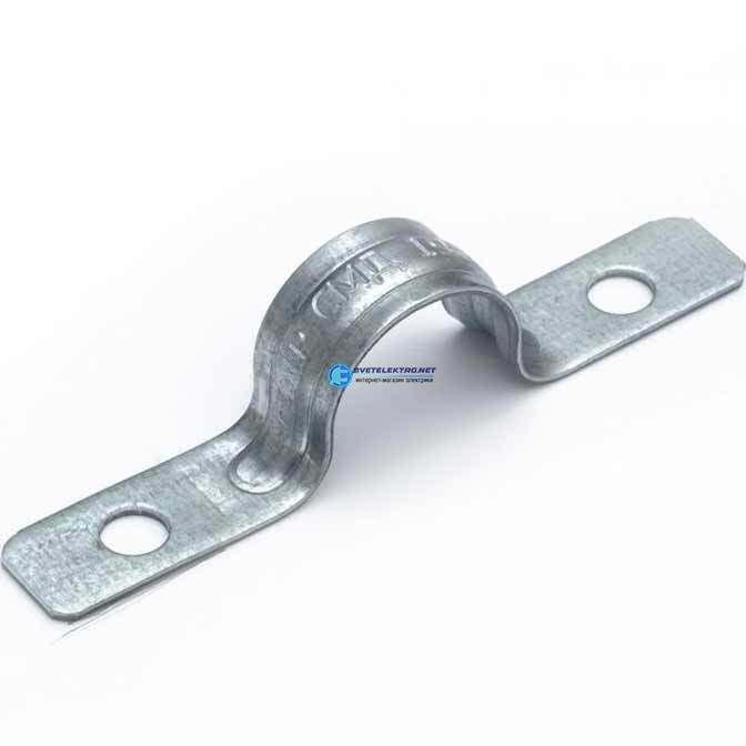 Скоба металлическая двухлапковая усиленная противопожарная СМДУ d19-20 мм отв. d 6,5 мм (100 шт/уп), код PR13.02437, производитель Промрукав