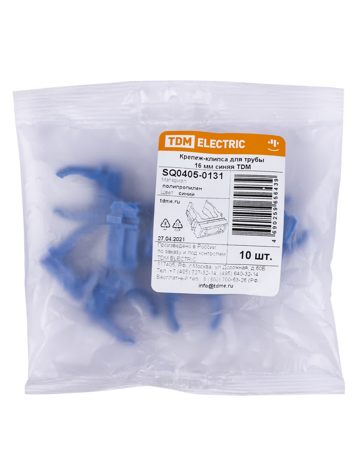 Крепеж-клипса для трубы ПНД 16 мм 10 шт. синяя, код SQ0405-0131, производитель TDM
