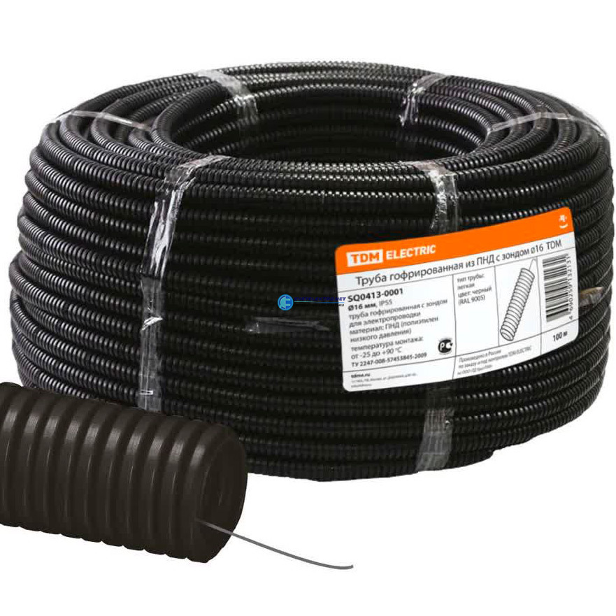 Труба гофрированная ПНД 16 с зондом (100 м) легкая, код SQ0413-0001, производитель TDM