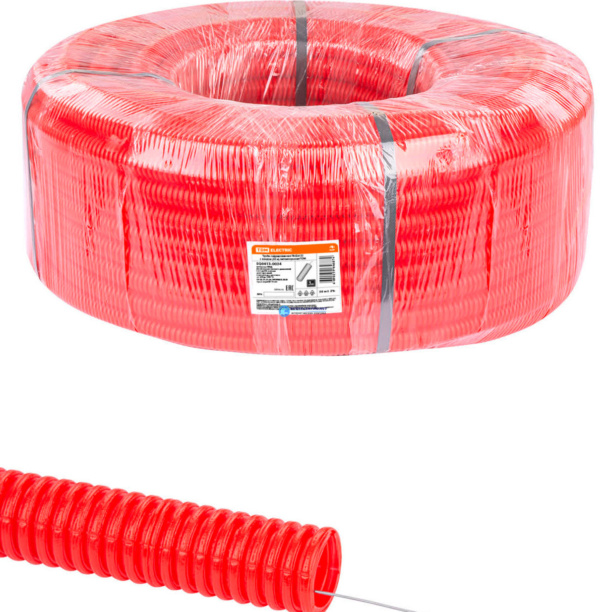 Труба гофрированная ПНД 32 с зондом 50 м легкая 350Н красная, код SQ0413-0034, производитель TDM