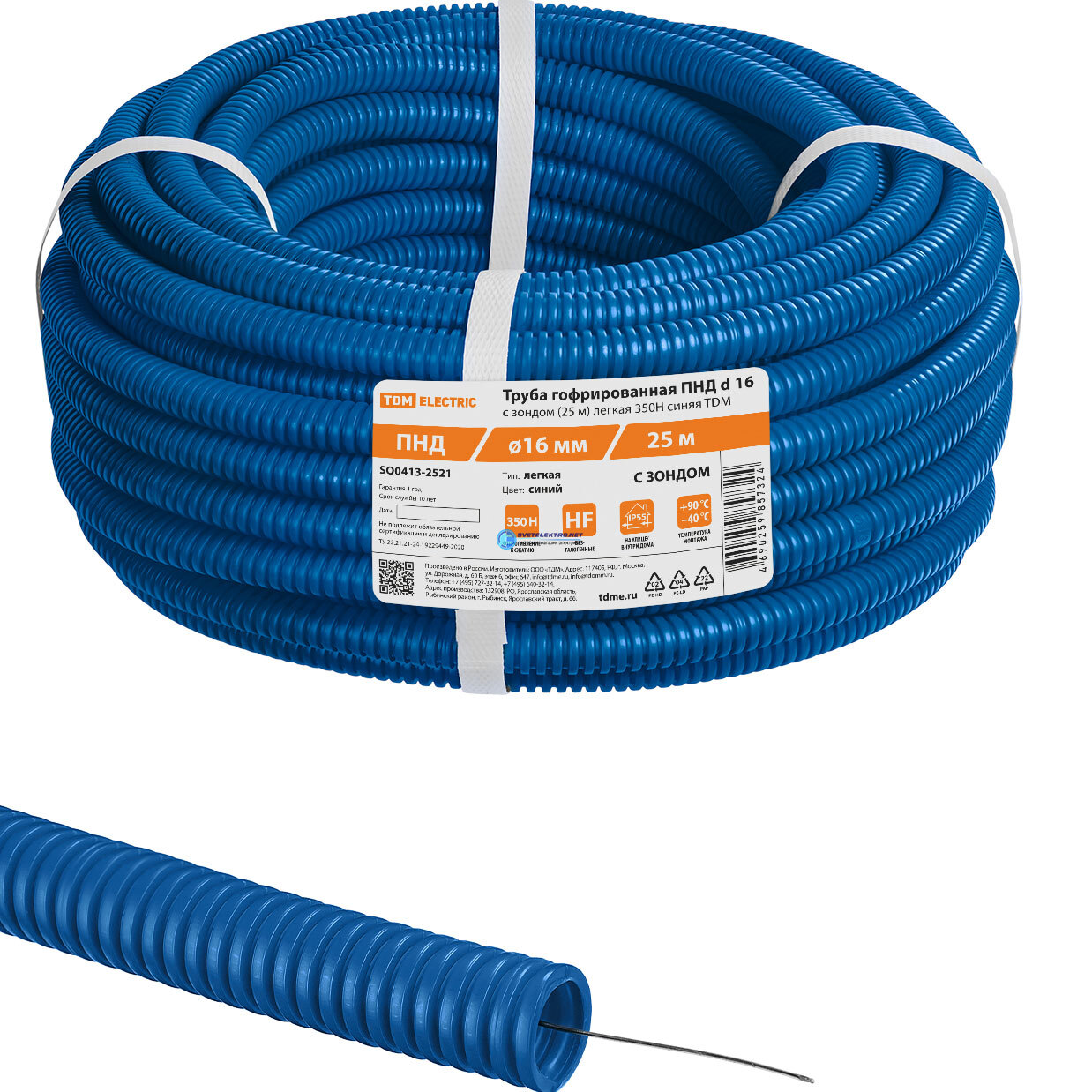 Труба гофрированная ПНД 16 с зондом м легкая 350Н синяя, код SQ0413-2521, производитель TDM