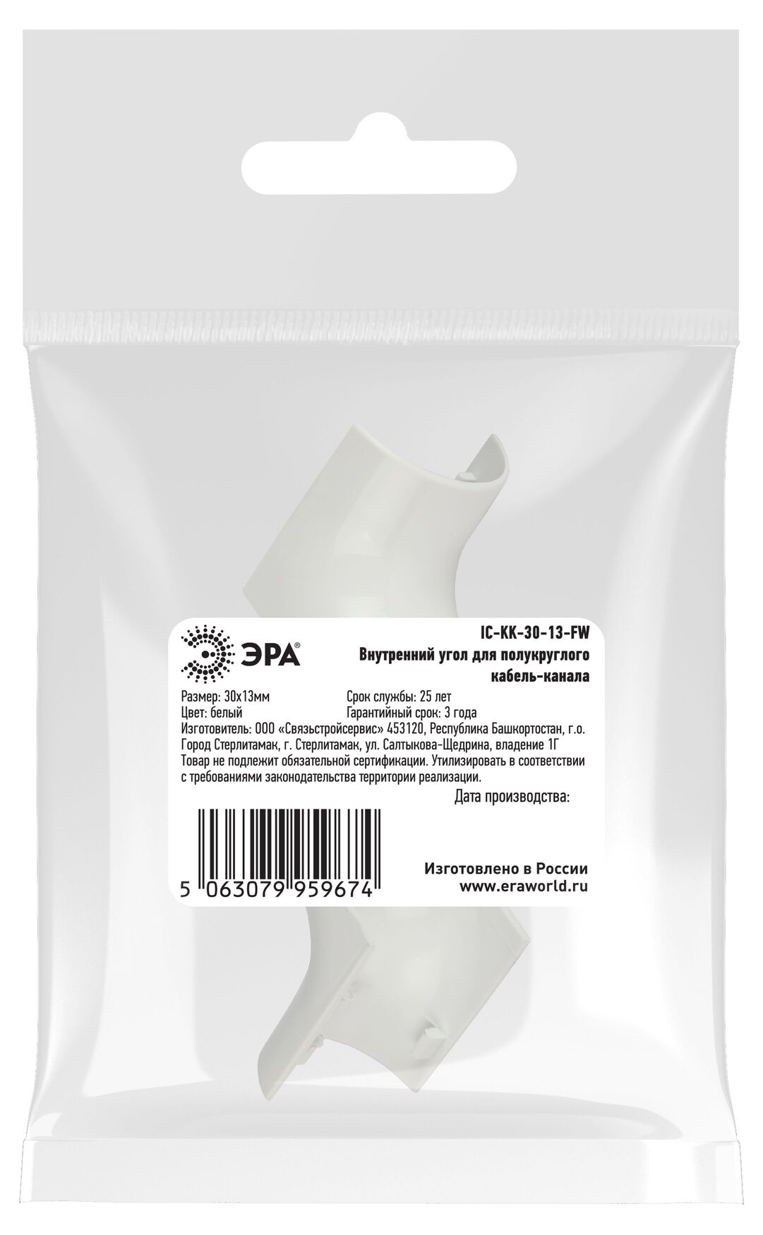 Угол внутренний для полукруглого кабель-канала 30х13мм белый IC-KK-30-13-FW 2шт/комплект, код Б0064896, производитель ЭРА