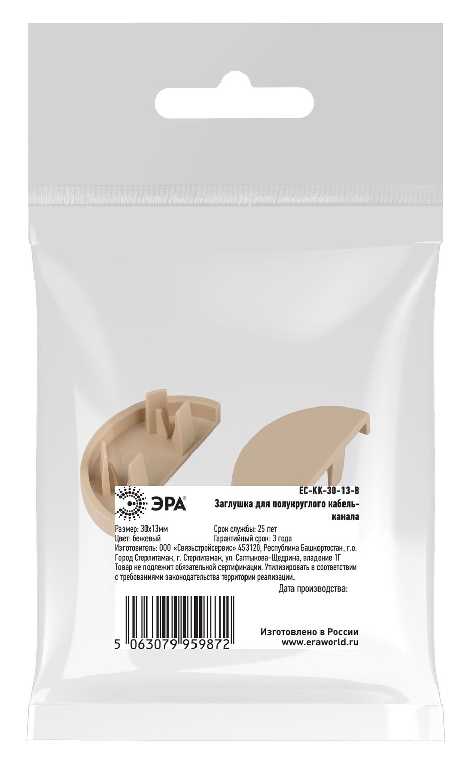 Заглушка EC-KK-30-13-B для полукруглого кабель-канала бежевая 30х13мм 2шт/комплект, код Б0064959, производитель ЭРА