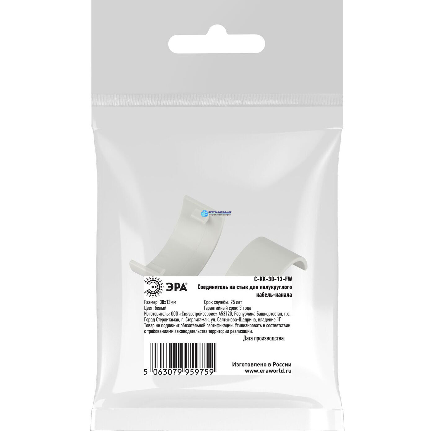 Соединитель C-KK-30-13-FW на стык для полукруглого кабель-канала белый 30х13мм 2шт/комплект, код Б0064971, производитель ЭРА