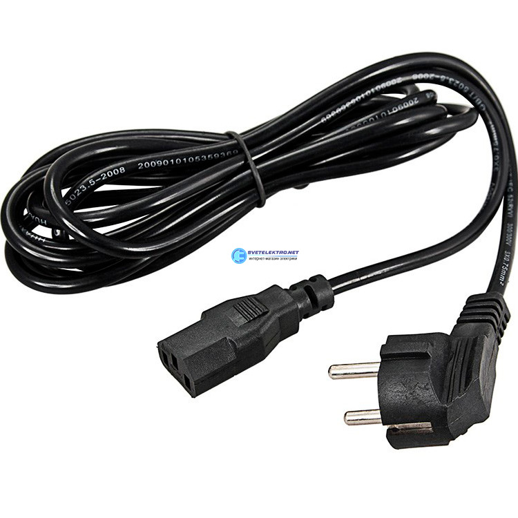 Кабель питания СЕЕ 7/7 (Schuko) IEC 320 C13 3x0,75 мм2, длина 0,6м, угловая вилка, код 04-2731, производитель REXANT