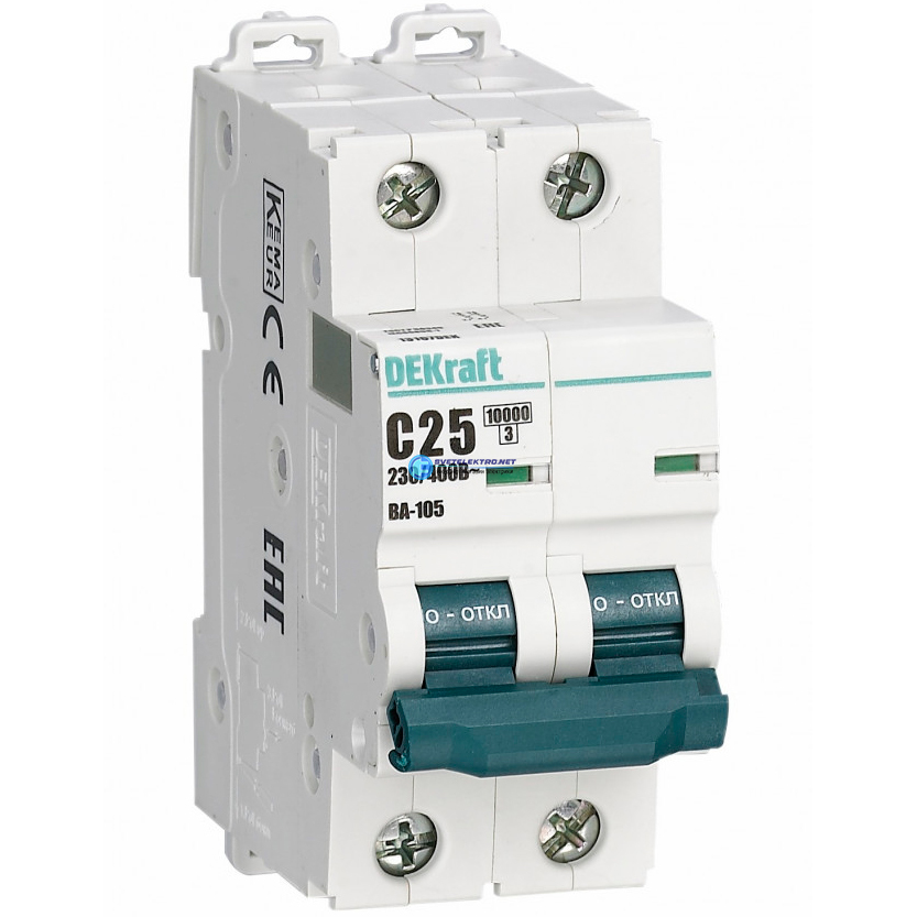 Выключатель автоматический 2п 25A 10кА ВА-105, код 13215DEK, производитель DEKraft