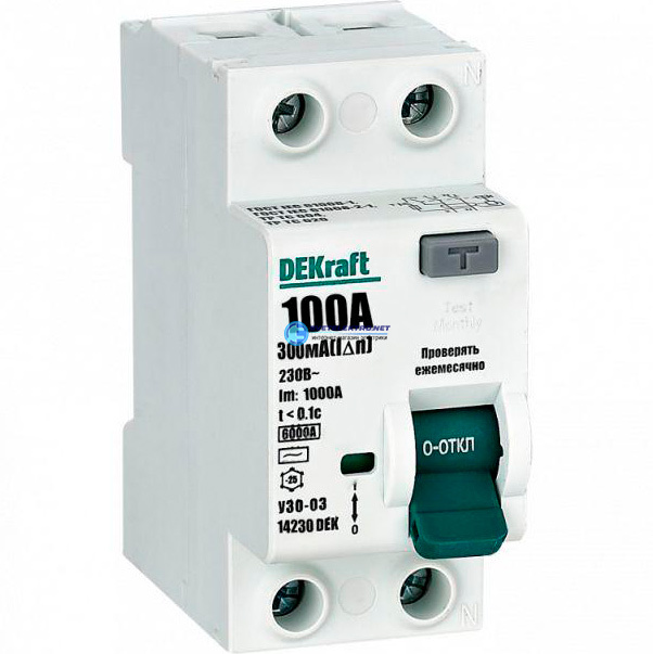 Выключатель дифференциального тока УЗО 03-6кА-2P-100А-300-AC, код 14230DEK, производитель DEKraft