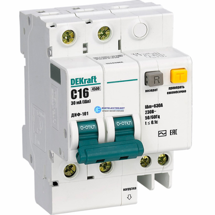 Выключатель автоматический дифференциальный АВДТ встроенная защита от сверхтоков 1P+N 25А 30мА AC ДИФ-101, код 15168DEK, производитель DEKraft