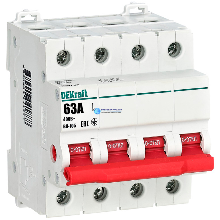 Выключатель-разъединитель 4Р 63А ВН-105, код 17097DEK, производитель DEKraft