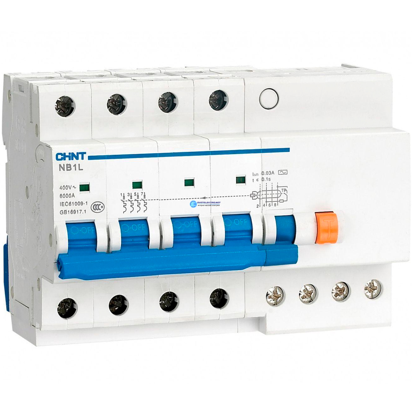 Автомат дифференциальный NB1L-40 4P C16 30мА тип AC 6кА (R), код 198111, производитель CHINT