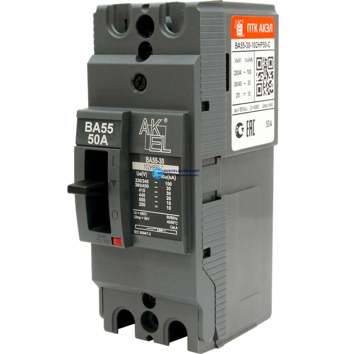 Выключатель автоматический в литом корпусе ВА55-30-102НР16-С 2P/16A/НP/30кА 209099 АКЭЛ