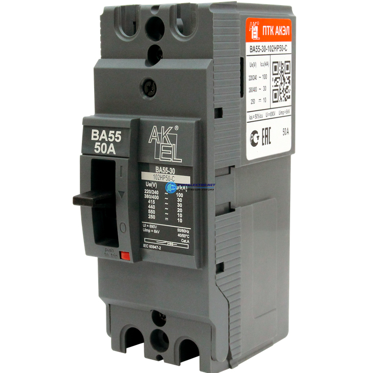 Выключатель автоматический в литом корпусе ВА55-30-102НР63-С 2P/63A/НP/30кА 209104 АКЭЛ
