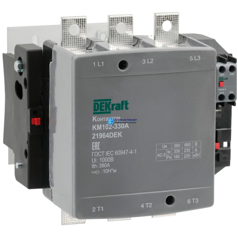 Контактор 330А 220В АС АС3 АС4 1НО+1НЗ КМ-102, код 21964DEK, производитель DEKraft