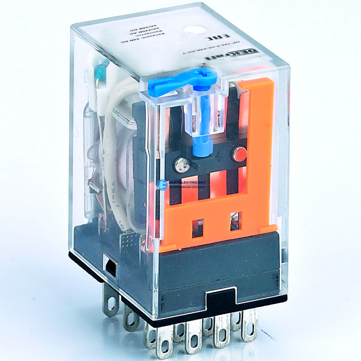 | Преимущества: | Новое исполнение с кнопкой ''ТЕСТ'' позволяет изменить статус контактной группы (открыт или закрыт) вручную без подключения к сети.|Компактность промежуточных реле позволяет использовать в местах с ограниченным пространством для монтажа.|Высокая коммутационная износостойкость засчет использования уникальной структуры дугогасящей пластины и применения высокотехнологичных серебросодержащих электрических контактов.|Высокая скорость переключения - менее 20 мс, позволяет использовать реле в любых системах автоматизации|Номинальный ток до 10 А и три вида контактных групп значительно расширяют область применения.|Простота монтажа обеспечивается благодаря втычным контактам реле.: |