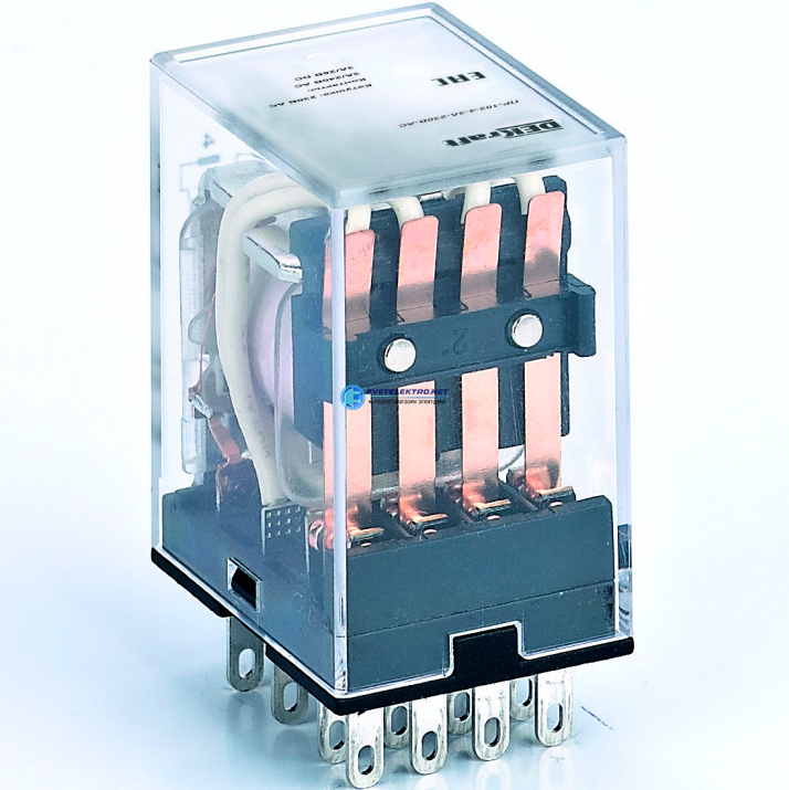 | Преимущества: | Новое исполнение с кнопкой ''ТЕСТ'' позволяет изменить статус контактной группы (открыт или закрыт) вручную без подключения к сети.|Компактность промежуточных реле позволяет использовать в местах с ограниченным пространством для монтажа.|Высокая коммутационная износостойкость засчет использования уникальной структуры дугогасящей пластины и применения высокотехнологичных серебросодержащих электрических контактов.|Высокая скорость переключения - менее 20 мс, позволяет использовать реле в любых системах автоматизации|Номинальный ток до 10 А и три вида контактных групп значительно расширяют область применения.|Простота монтажа обеспечивается благодаря втычным контактам реле.: |