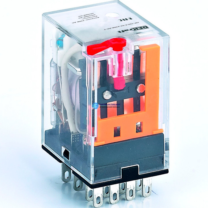 | Преимущества: | Новое исполнение с кнопкой ''ТЕСТ'' позволяет изменить статус контактной группы (открыт или закрыт) вручную без подключения к сети.|Компактность промежуточных реле позволяет использовать в местах с ограниченным пространством для монтажа.|Высокая коммутационная износостойкость засчет использования уникальной структуры дугогасящей пластины и применения высокотехнологичных серебросодержащих электрических контактов.|Высокая скорость переключения - менее 20 мс, позволяет использовать реле в любых системах автоматизации|Номинальный ток до 10 А и три вида контактных групп значительно расширяют область применения.|Простота монтажа обеспечивается благодаря втычным контактам реле.: |